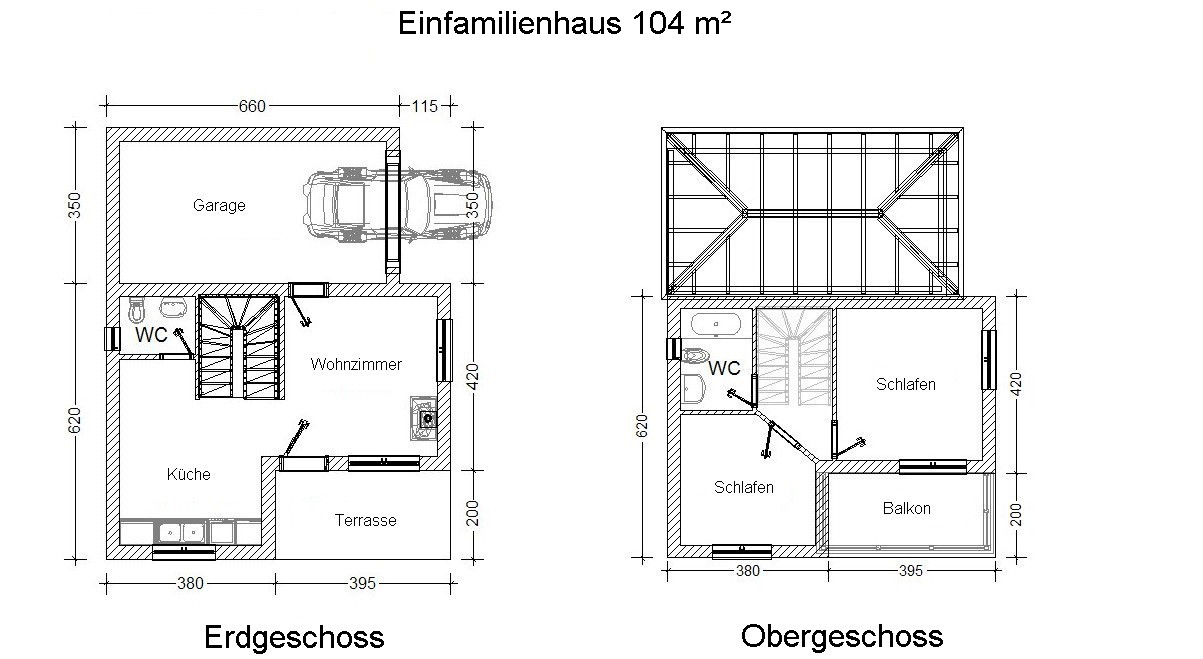Häuser mit 104 m² und Apartments von ca. 58 m² Wohnfläche.