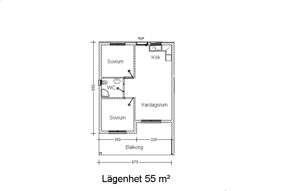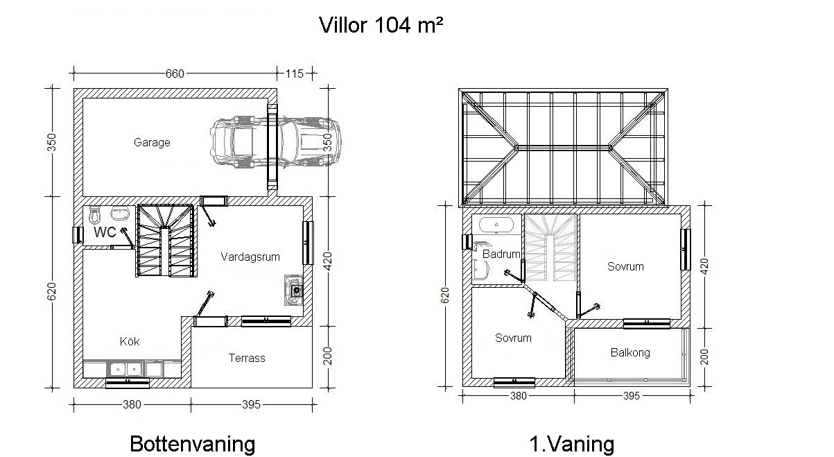 med byggytor på 104 m² och lägenheter på 55 m².